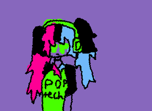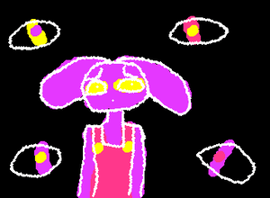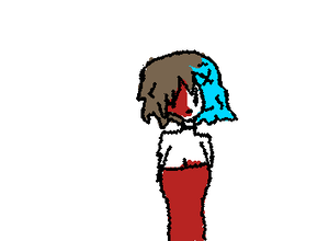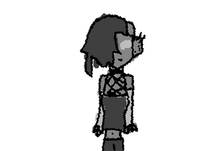 my tadc oc, pretend the arms are rainbow and she has grey pants. and she a bunni