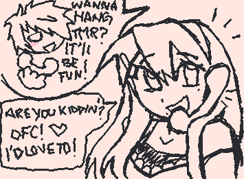 [ "Wanna hang out tomorrow? It'll be fun!" He asks at the other end of the phone. "Of course! I'd love to!" Viora says with excitement.] I might cry bc of them.